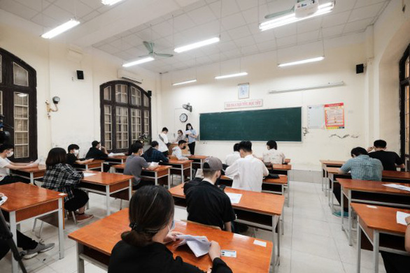 Thí sinh làm thủ tục thi THPT quốc gia 2021 – Ảnh: MAI THƯƠNG