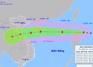 Hồi 07 giờ ngày 13/10, vị trí tâm bão ở khoảng 19,0 độ Vĩ Bắc; 113,1 độ Kinh Đông, cách quần đảo Hoàng Sa khoảng 260km về phía Bắc Đông Bắc, cách đảo Hải Nam (Trung...