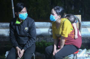 Đêm 7-10 là đêm khó quên với nhiều người khi họ phải chờ những chuyến xe buýt đưa họ tới điểm trung chuyển để về quê, nhiều người lo lắng đến mức chỉ ôm con,...