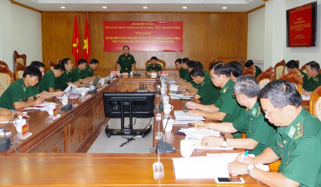 Ngày 22/8, tại Bộ chỉ huy Bộ đội Biên phòng (BĐBP) Thành phố Hồ Chí Minh (TP.HCM), Ban Giám đốc Học viện Biên phòng (HVBP) phối hợp với Bộ Chỉ huy BĐBP TP.HCM tổ chức tọa đàm phục vụ đề tài nghiên cứu cấp Bộ Quốc phòng với nội dung “BĐBP cùng với các lực lượng bảo đảm an ninh, trật tự ở khu vực biên giới biển trong tình hình mới”. Đại tá Trần Thanh Đức, Chỉ huy trưởng BĐBP TP.HCM và Đại tá, PGS, TS Nguyễn Xuân Bắc, Phó Giám đốc HVBP đồng chủ trì buổi tọa đàm.